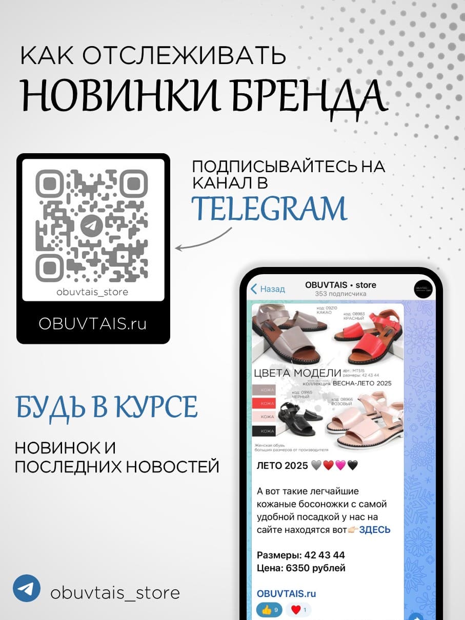 У нас на канале в Telegram мы публикуем живые фото новинок, сообщаем о скидках и акциях и показываем видео с обзорами наших моделей! Ждем Вас в гости!